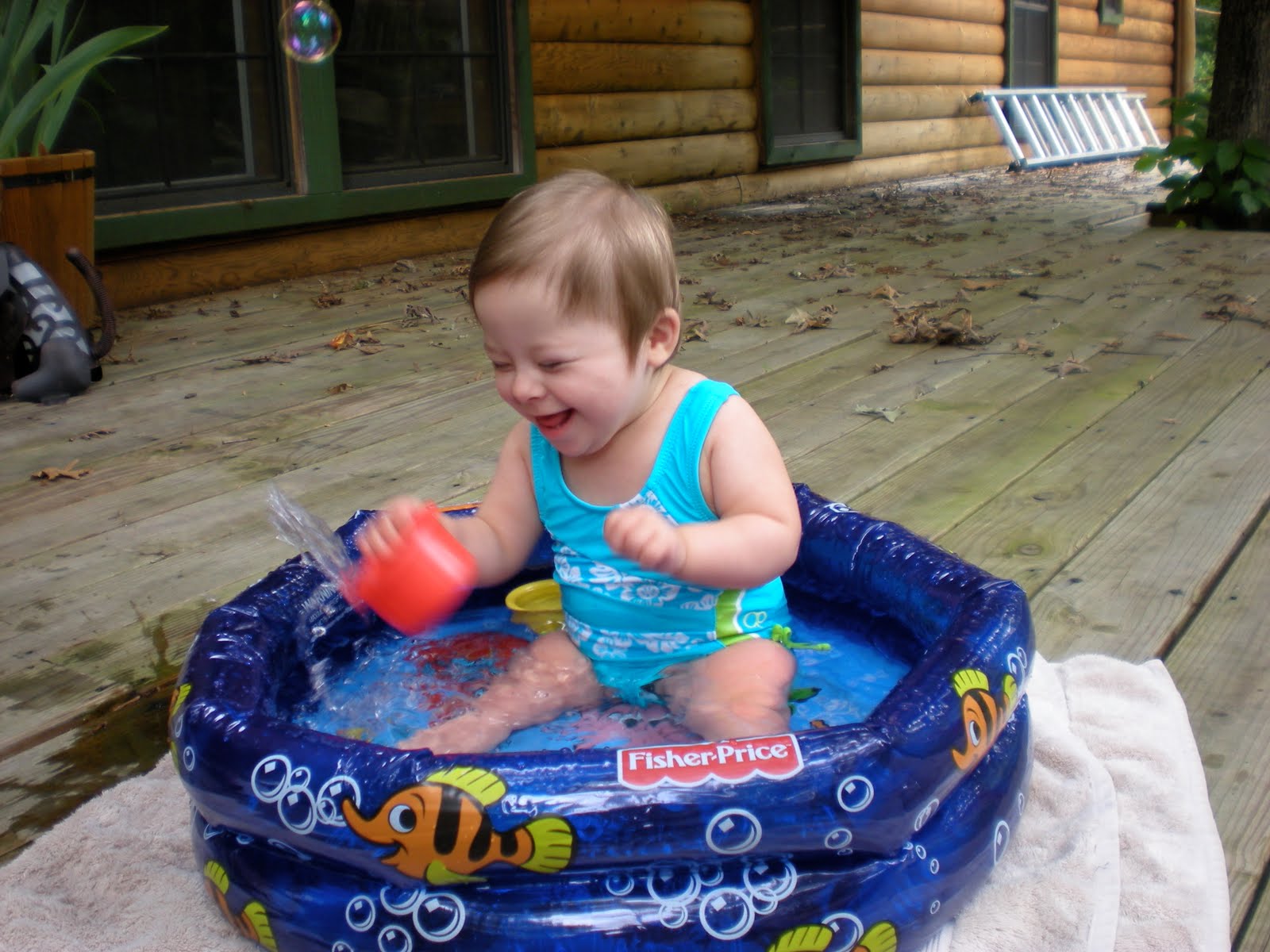 We were given a blow-up baby pool as a shower gift last year but it said 18+ months on the package so I had put it away. Turns out it was small enough I could have been using it for a bathtub this entire time! It is such a cute little pool, called The Tadpole. ha! She had a blast splashing, filling up the cups and pouring water out of the cups. Thanks Carolina!!